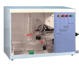 - Hệ thống chưng cất bằng thuỷ tinh Borosillicate PYREX được đặt trong hộp bảo vệ, dễ tháo lắp và vệ sinh máy